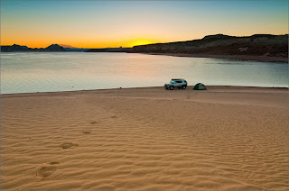 A few weeks ago, I went out to Lone Rock at Lake Powell for some solo camping and to get my FJ in the sand. I left Flagstaff around 7pm and was set up in camp by 10pm on the lake, just feet from the water. It's primitive camping - pit toilets and no water. Luckily for me, I can carry everything I need in the truck.